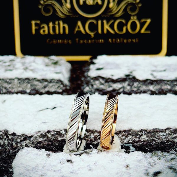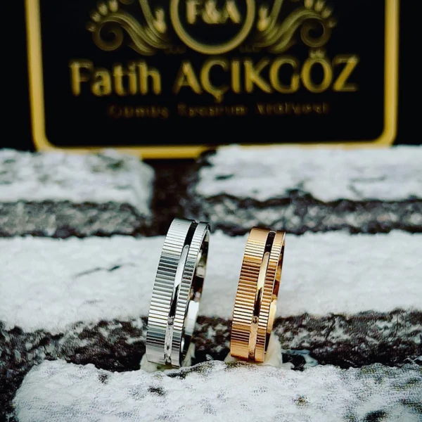Çizgi Desenli Çift Alyans
