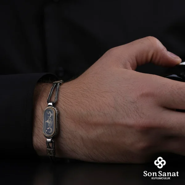 Küçük HasbinAllah Gravür 925 Ayar Gümüş Oval Zincirli Bileklik