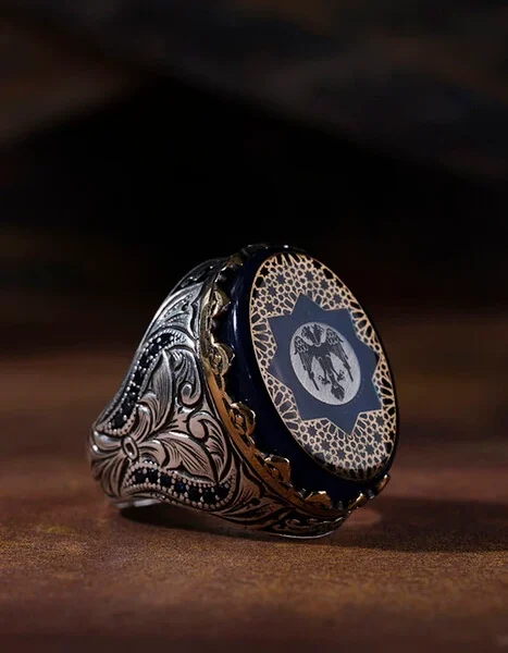 Selçuklu Kartalı 925 Ayar Kalkan Zihgir Gümüş Erkek Yüzük