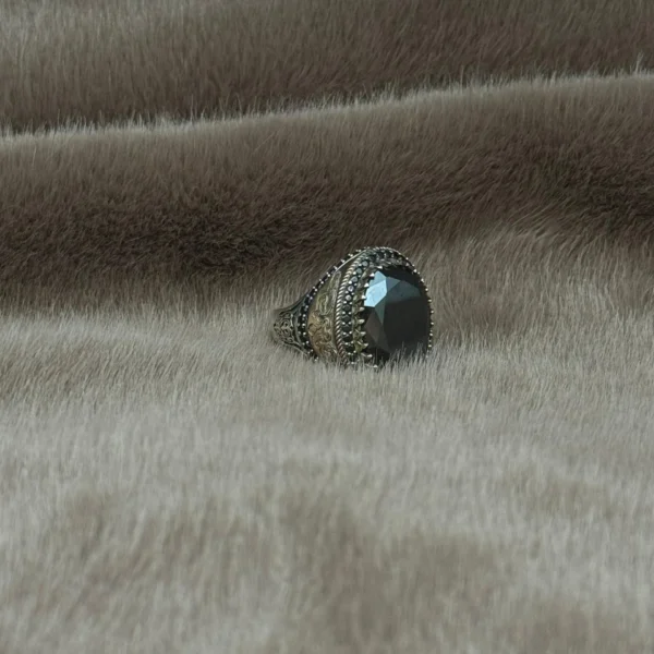 Siyah Oniks Taşlı Yuvarlak Kadın Yüzük Modelimiz
