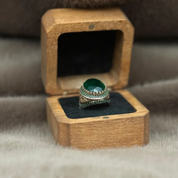 Yeşil Paraiba Taşlı 925 Ayar Gümüş Erkek Yüzüğü