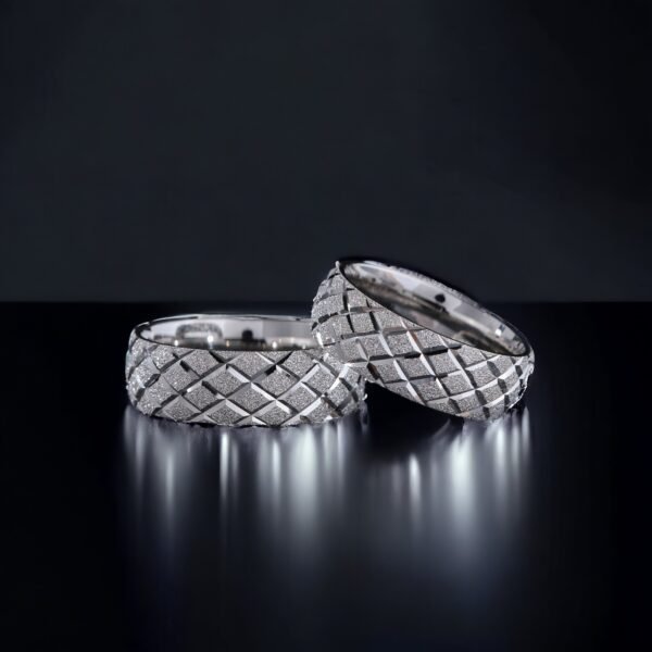 Baklava Desenli Çizgi Çift Gümüş Alyans