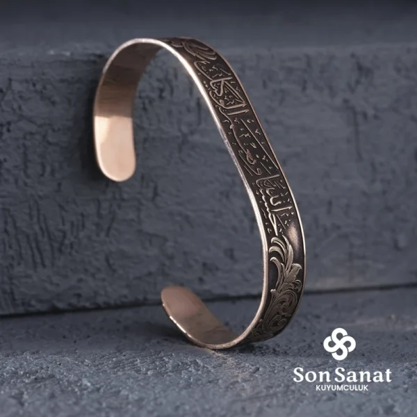 Gravür Oval Kral Zincirli La Galibe İllallah 925 Ayar Gümüş Bileklik